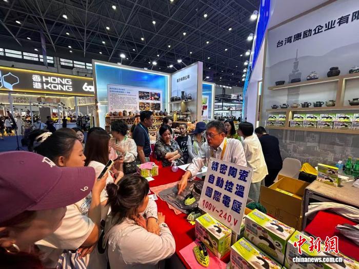 4月15日,第六届中国国际消费品博览会上,来自台湾的多功能特色熨斗吸引众多观众驻足咨询。中新网记者符宇群摄
