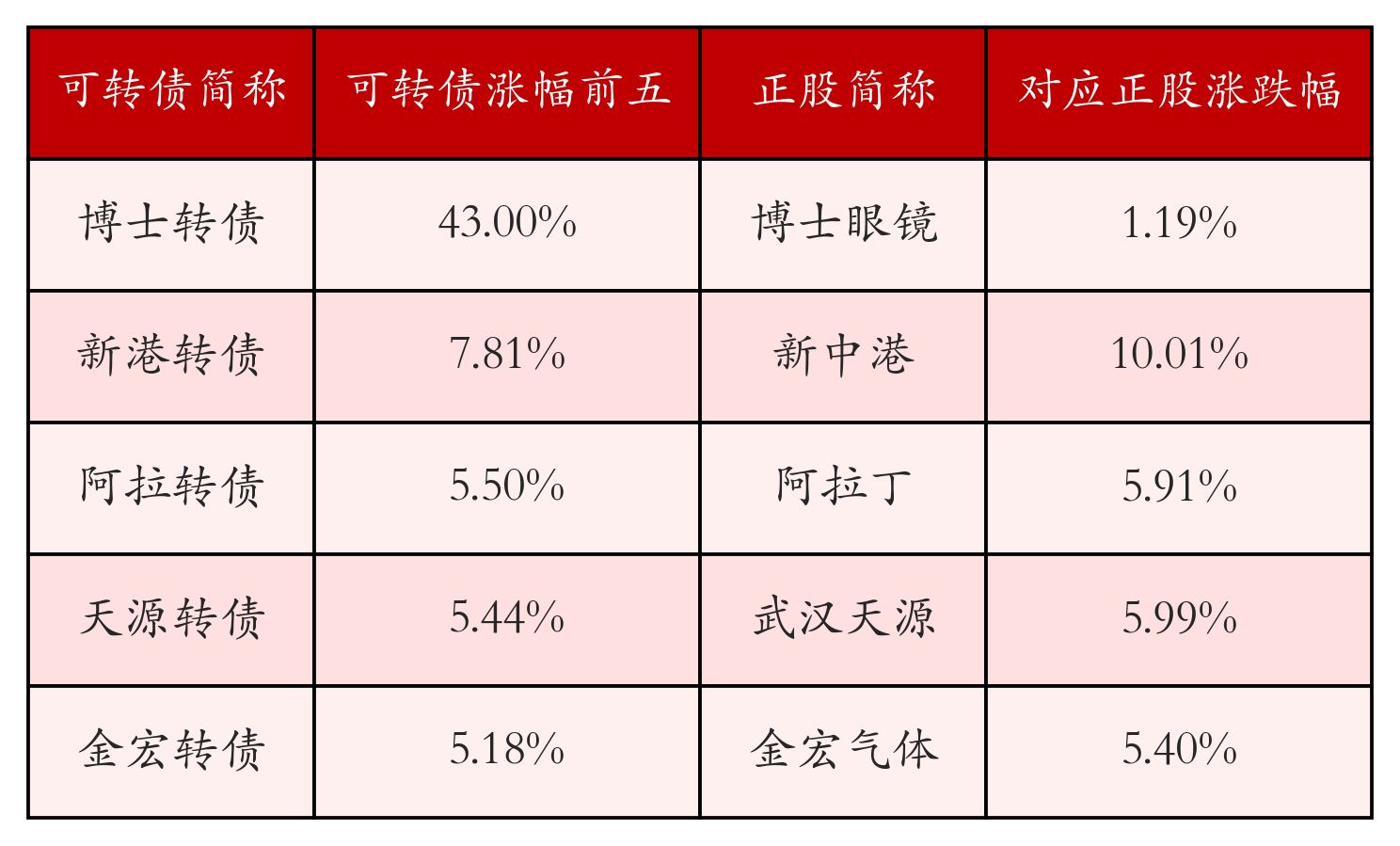 南财智讯4月7日电,盘后数据显示,债市方面,中证转债指数收涨0.38%,报492.94,成交额为591.19亿元。可转债方面,今日共成交342只可转债,其中252只收涨,1只收平,89只收跌。具体来看,36只可转债涨幅超过2%。其中博士转债(123266)涨43.0%,新港转债(111013)涨7.81%,阿拉转债(118006)涨5.5%。今日有8只可转债跌幅超2%,利柏转债(111023)跌7.25%,思特转债(123054)跌6.51%,泰福转债(123160)跌4.64%。存在交易量的可转债所对应的正股中,244只收涨,6只收平,92只收跌。具体来看,30只可转债对应正股涨幅超过5%,其中,龙星科技(002442)涨停,收涨10.05%;三房巷(600370)涨停,收涨10.04%;神马股份(600810)涨停,收涨10.04%。同时所对应的可转债:龙星转债(127105)同涨5.07%;三房转债(110092)同涨4.32%;神马转债(110093)同涨1.52%。今日有3只可转债对应正股跌幅超过5%,没有正股跌停。